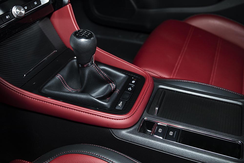 名爵6高铁版以三款车中最多的豪华体验、舒适配置,摆脱手动“丐版”的既定印象大气“加料”。在车内,名爵6高铁版采用了常见于豪车的软材质包覆和缝线处理,还提供运动色彩的双色内饰布局,配以真皮方向盘,豪华感十足。而且其科技配置也相当大手笔,无钥匙进入、一键启动、电子手刹、Auto Hold自动驻车等诸多领先同级的配置,也让整车质感进一步提升。