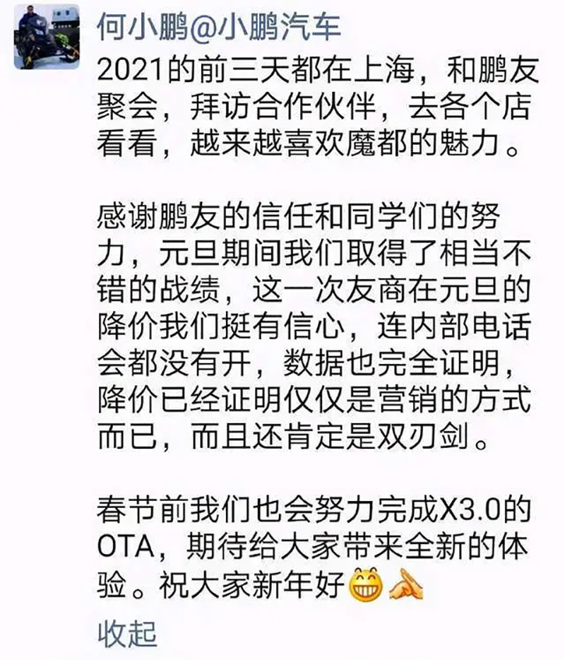 (车闻在线)车市开年,莫过于国产Model Y低价开售引发的漩涡。相对于市场的热情,造车新势力的反应比预期的要冷静的多。蔚来李斌和小鹏汽车何小鹏相继表示,降价未对其造成影响。