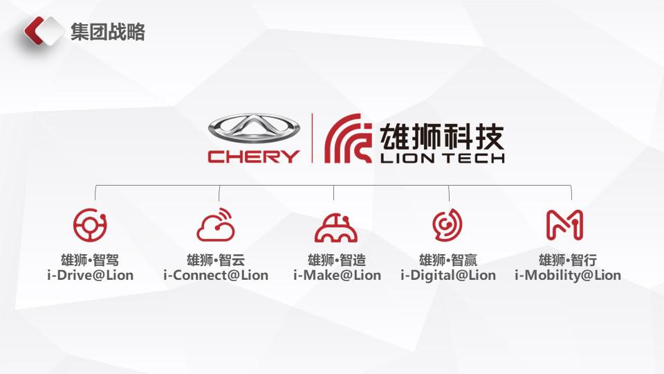 “雄狮”并不仅是为星途而生。在接受搜狐汽车采访时,奇瑞汽车股份有限公司总经理助理,智能汽车事业群执行总监朱国华表示:雄狮科技是奇瑞集团下面的一个业务板块,包括雄师智驾、雄狮智云、雄师智造、雄师智赢、雄狮智行五个业务领域,涵盖智能汽车整车研发、制造、销售及出行服务全产业价值链。