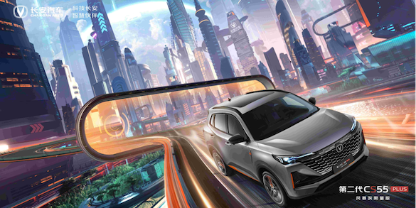 『时空竞速』中,搭载蓝鲸新一代NE1.5T高压直喷发动机与蓝鲸7速湿式双离合变速器的长安第二代CS55PLUS风暴灰限量版,在科技之城中疾驰的背影,彰显着强劲澎湃的动力,时刻蓄势待发,强劲推背感让新轻年感受速度与激情,在通往热爱的路上,一往无前。