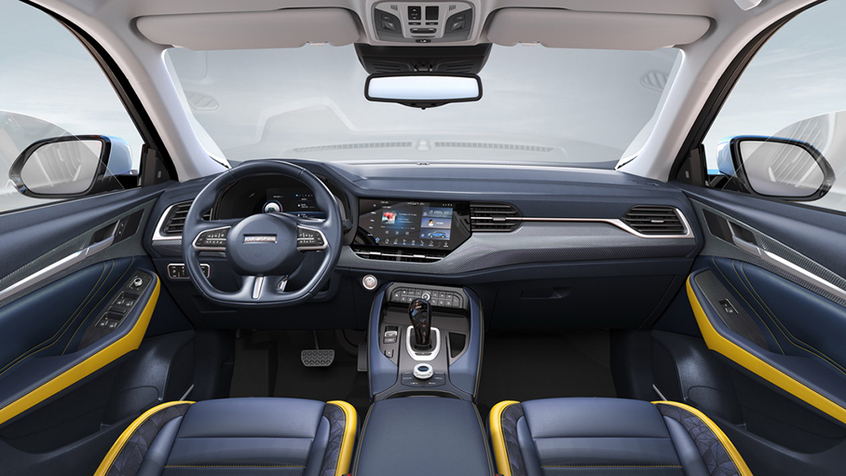 在内饰设计上,哈弗F7x性能版采用专属蓝黄内饰,全新座椅采用织物+皮革材质,在座椅靠背上还设有“F”刺绣设计,进入其中,就让人就满怀激情。