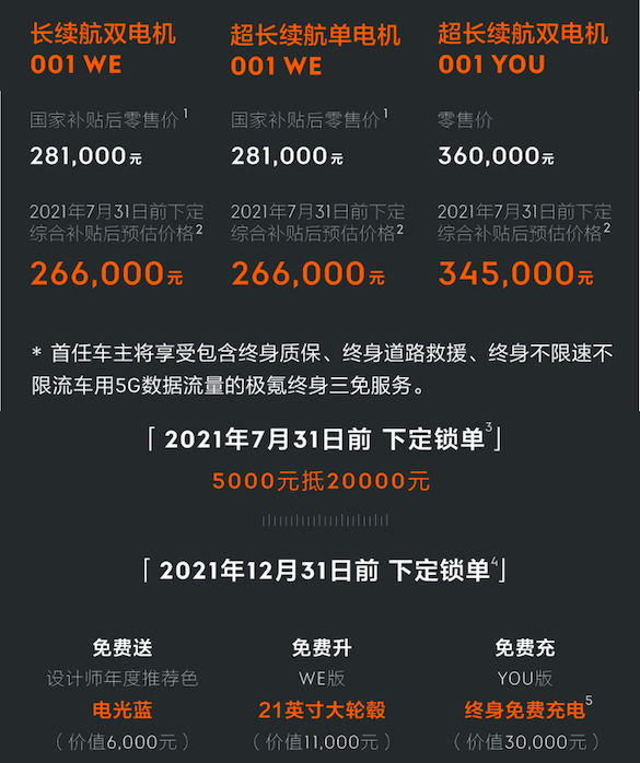 4月15日,吉利控股集团旗下全新智能纯电品牌——极氪智能科技有限公司(以下简称极氪)品牌发布会在杭州湾极氪智慧工厂盛大举行。极氪基于SEA浩瀚智能进化体验架构打造的首款量产车型——极氪001,也在发布会上同步开启预定,价格区间28.1万元——36万元(国家补贴后零售价),涵盖WE版、YOU版共三款车型,将于2021年10月开始交付。