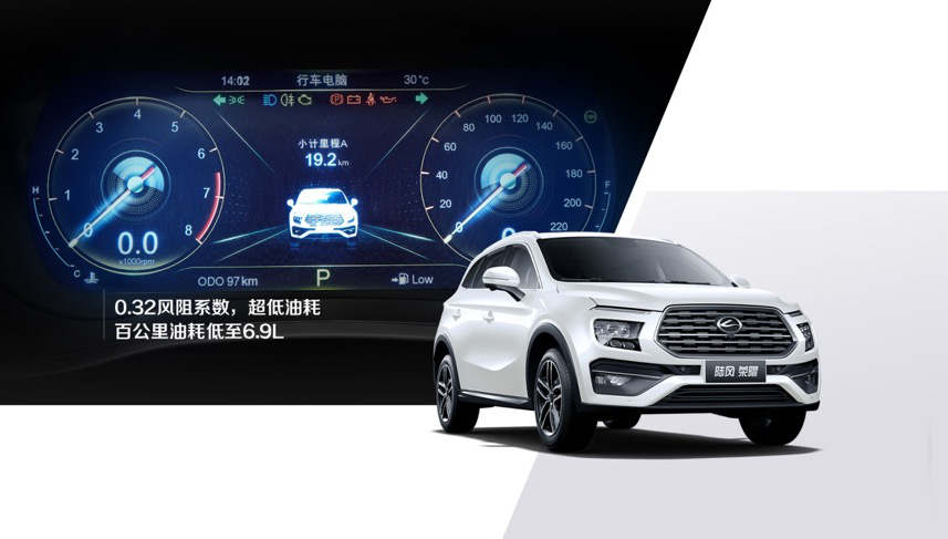 为了让消费者轻松享受有车生活,陆风荣曜从研发之初就将轻量化、环保性作为重中之重。在保证车身刚度、强度达到最优的同时,实现了整车轻量化。据悉,陆风荣曜的轻量化系数达到4.4,整备质量只有1480kg,表现优于以轻量化著称的日系同级车型,是轴距2700mm以上的现有A级SUV当中唯一整备质量在1.5吨以下的车型,同时,风阻系数低至0.32,大大领先行业平均表现0.38,这使得高速行驶风噪低于70分贝,百公里油耗减少8%,综合油耗仅为6.9L,经济性在这一级别中领先优势明显。
