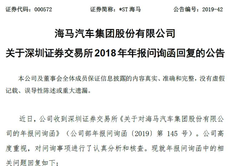 四大因素影响利润 海马回复深交所问询