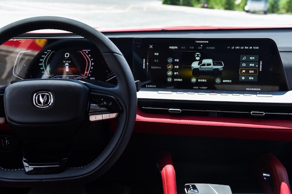 长安览拓者·探索版车内设计感十足,科技感爆棚。专属打造黑红双色内饰,时尚气息与野性能量的碰撞,将越野战斗时的燃动激情、热血氛围感瞬间拉满。在科技智能上,定制地图皮卡版专属车机,皮卡地图、智能交互语音、娱乐影音等功能应有尽有。它还搭载了12.3英寸镜湖式智慧双联屏,8.1°弧度设计,让车内的每一位成员都拥有最好的观看角度。全车还搭载了4个分辨率为1280/960高清广角摄像头,1000万像素,集成 360°高清全景影像+180°皮卡透视底盘和行车记录仪功能,实时洞察周围实景,行车更安全。