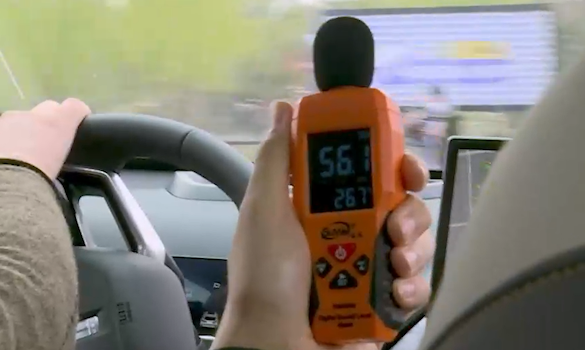 在测试“静”这一环节,试驾场地放置一台音响,现场播放音乐,模拟嘈杂环境,同时用分贝仪记录环境数据。试驾车围绕音响进行绕圈,同时也用分贝仪记录车内数据。在车外超过90dB的情况下,车内成员正常谈话交流,保持在50-70dB范围浮动,整体表现出色,可以为用户带营造纯电般的驾驶感受。