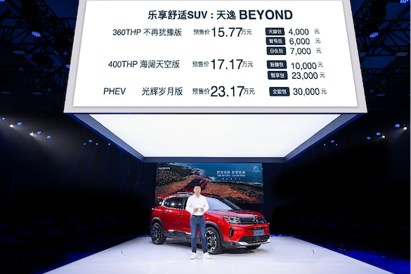 7月14日,东风雪铁龙举办“舒适进阶 纵情超越”天逸BEYOND预售发布会。此次发布的东风雪铁龙天逸BEYOND共3款车型,不仅配置丰富、标配即豪华,同时还提供6项选装包、4种车身颜色和2大内饰,进一步满足客户更加个性化的用车需求,官方预售价格为15.77万元—23.17万元。”