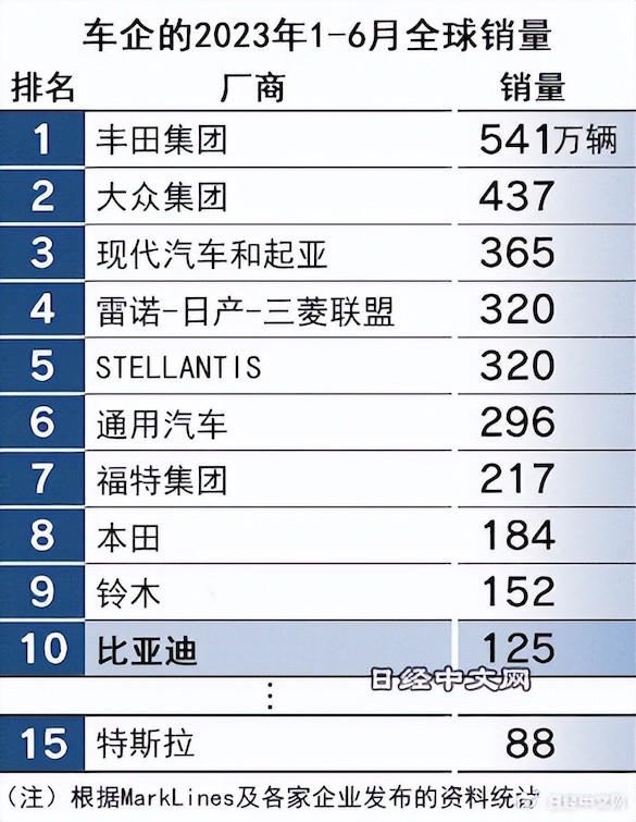累计125万辆!比亚迪上半年新车销量首进全球前十