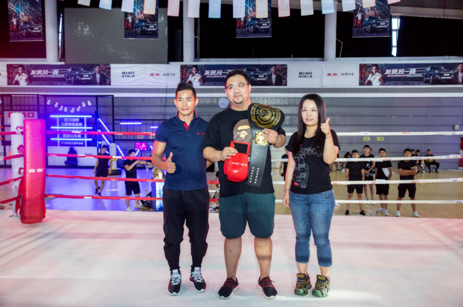 北京越野BJ40城市猎人版与搏击运动的跨界共舞,在汽车市场上实属首次,因而吸引了众多关注的眼球。活动现场声浪起伏,活力爆棚,30大专业搏击训练体验和三大互动区域体验,让平日里习惯坐在电脑前的各位队员大呼过瘾。而世界搏击冠军、“中国虎“杨建平的亲临助阵,加上高燃刺激的搏击实战表演,则将现场活动的气氛推向了最高峰!