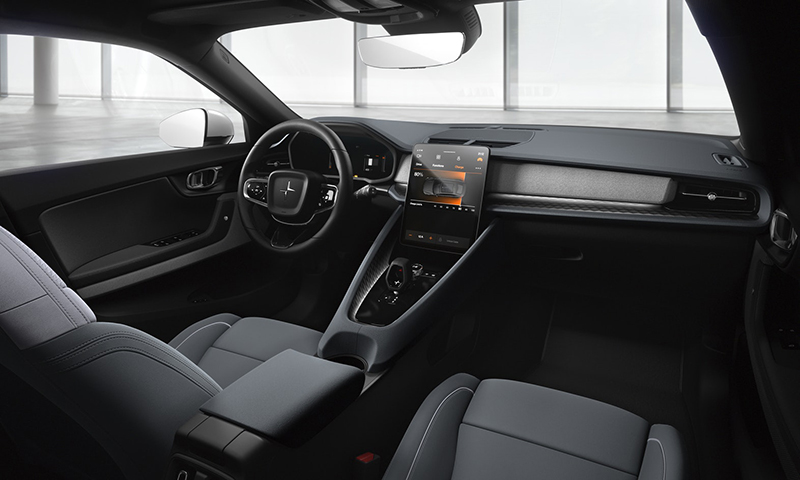 Polestar 2内饰也采用了时尚简约的风格,11.15 英寸无框触摸屏中控采用竖向布置,显示简洁直观,易于操作。搭配 12.3 英寸的数字仪表盘,提供耳目一新的现代科技感。中控部分内置了最新的安卓HMI人机交互系统,针对本土市场的特性和需求集成了众多智能功能。特别是语音指令,可通过语音控制各项功能:从调节车内温度到选择播放曲目,从而能够更专注于驾驶。 中空六棱换档杆,中央饰有发光的 Polestar 标志,新颖且时尚。