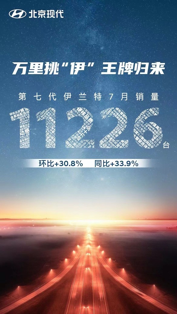 在创新改革的推动下,北京现代在今年也实现了销量的稳步回升。刚刚过去的7月,第七代伊兰特取得了11,226台的销量成绩,环比增长30.8%,同比增长33.9%,与此同时伊兰特在中国市场的累计销量也超过了500万辆。可以说,虽然短期的市场动荡让北京现代的发展遭遇了一些挑战,但长远来看,北京现代仍将通过各项行之有效的战略举措,实现年轻活力与品牌形象的强关联,以更强的品牌号召力重回头部阵营。