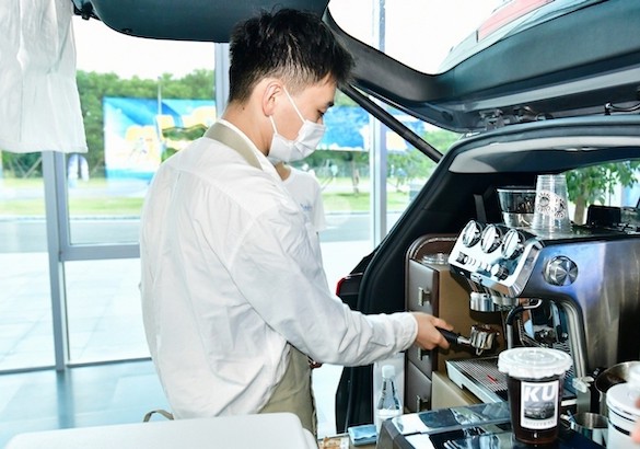 结束6公里的嗨跑后,百人跑团来到了北京现代设置的后备厢集市体验区。库斯途咖啡车和联名动漫IP巧虎打造的炫彩库斯途,为跑团成员带来了乐享自在的生活方式。一旁的冰激凌集市也深受跑者喜爱,扫描活动现场二维码,还可参与限量版茅台冰淇淋抽奖。
