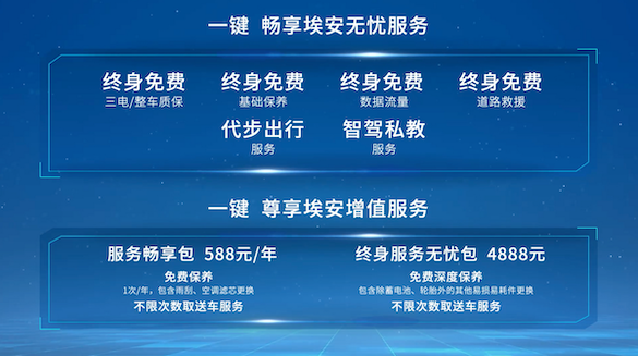 “三电”不仅是纯电动车的动力核心,更是根基所在,也是消费者购车时最为关注的问题之一。为此,AION LX Plus推出了行业最高标准的服务,包括“三电”和“整车”终身免费质保、终身免费基础保养,用车放心,免除了一切后顾之忧。此外AION LX Plus还提供终身免费数据流量、免费道路救援等优越服务,让车主惬意畅享绿色出行体验。另外AION LX Plus还为车主提供行业独创的上门智驾私教服务,足不出户便可享受一对一上门教学,轻松拥有智能驾驶辅助系统带来的便利出行。