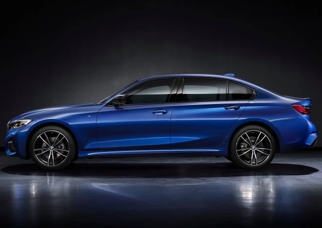 车身侧面,新一代车型的长轴距版和标准轴距版侧面设计完全一致。全新宝马3系长轴距版长宽高分别为4829/1827/1436mm,轴距为2961mm,标准轴距版4719/1827/1459mm,轴距2851mm。与现款车型相比,新车的长轴距版本轴距增加了41mm。此外新车全系将标配18英寸轮圈,尾灯的造型更加修长,同时双边共两出的排气为全系标配。
