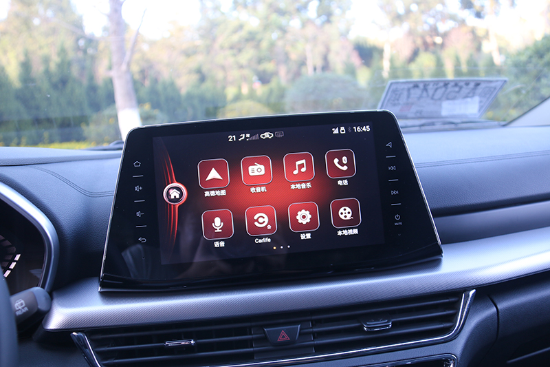 最大的亮点应该就是中控台部分了,功能区的布局既整洁又很有层次感,正中央采用了卷轴式10寸悬浮超清触摸屏,清晰度非常高。搭载的是自有的全新一代东南智联系统,同时搭载了GPS系统。通过手机与车辆的互联,只需开启科大讯飞的语音系统,就能顺利控制车内的空调、车窗等设备。当然娱乐功能也很丰富,启动界面立马就能听歌、听电台、看电视直播、查阅资讯、看天气,操作起来极易上手。