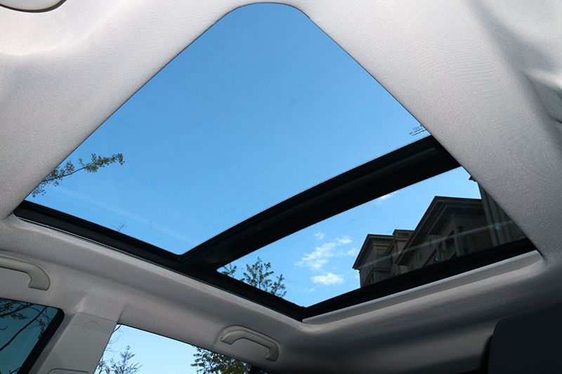 新车采光面积超过1㎡的智能防夹超大视野全景天窗,可以滑动,也可以倾斜开启,会让整个视野都得到扩充,驾驶的疲劳感也会得到缓和。