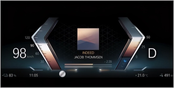 全新BMW iDrive使用了全新的设计语言——大胆的图形设计、未来感的画面质感、以及丰富的光影效果。全新的BMW曲面显示屏集成信息显示与控制功能,12.3英寸信息显示屏和14.9英寸控制显示屏合并为一个单元。所有显示屏均具有200 ppi(每英寸像素)的极高图形分辨率,协调地集成到驾驶区域和仪表板中。在仪表盘信息显示和抬头显示系统上,用户可以进行三种不同主题的切换:豪华驾驶、专注运动和简约艺术。基于全新的信息交互原则,车内三个显示屏可以完美配合,提供优化的界面布局和信息展示优先级。