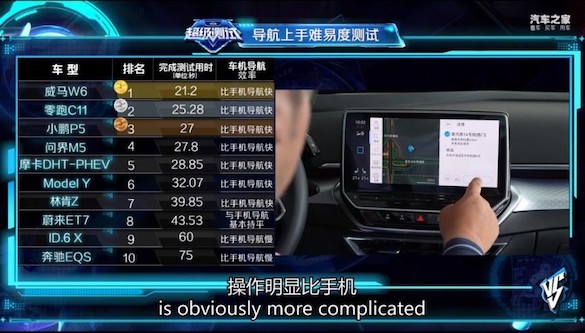 早期,车机系统中自带的导航功能因为地图更新慢、交互不便捷等问题受到用户诟病,手机支架反客为主成为各车型内的“标配”。如今,汽车座舱在智能化领域有了极大进步,无论是响应速度、交互流畅度,还是娱乐性上都已相当出色。在车机导航测试项目中,多款车机的表现均超过手机,其中威马W6更是以21.2秒的最短用时成为该领域冠军。