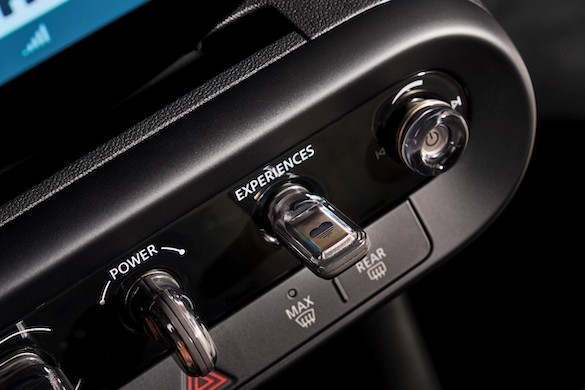 在圆形OLED中央显示屏下方,五个拨杆开关分别控制着驻车、档位、启停、体验模式和音量。其他功能都可通过显示屏进行操作。仔细观察还会发现,其中一个拨杆开关上还暗藏着MINI“BIGLOVE”小巧思,让人不禁慨叹——还是MINI最懂人心。
