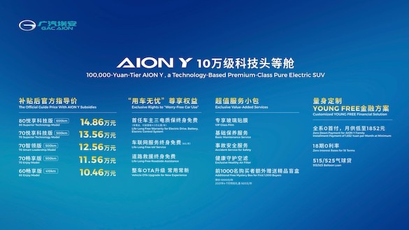 “10万级科技头等舱”AION Y上海车展上市 补贴后售价10.46万元起