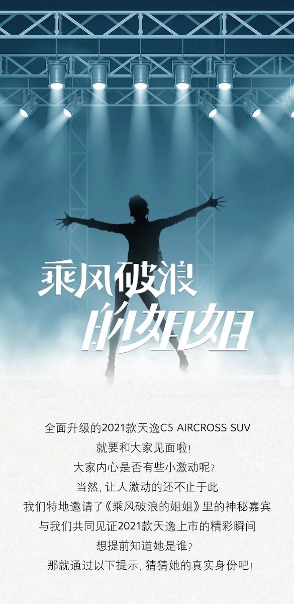 3月19日, 2021款天逸C5 AIRCROSS SUV即将如约而至,神秘浪姐也将正式揭开面纱,敬请期待!