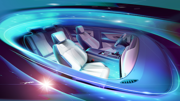 内饰渲染让视觉浸入梦幻宇宙,营造出动感环抱氛围,蓝白内饰相映成趣,营造一种“瀚海辰星”的品质之美。