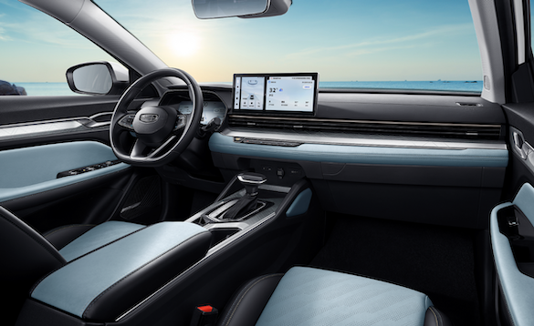 内饰上,帝豪L同样巧妙融合了中国文化与现代科技能量元素,采用了丹青蓝和流云白两种撞色设计,简雅宁静,营造出灵动美感与无尽韵味。“琴瑟和鸣”中控台,造型灵感取自中国古琴,贯穿式出风口线条如琴弦般流畅,在山水回响镭雕工艺饰板的搭配下,传统与现代并存,工业与艺术的美妙结合,尽显活力和质感。