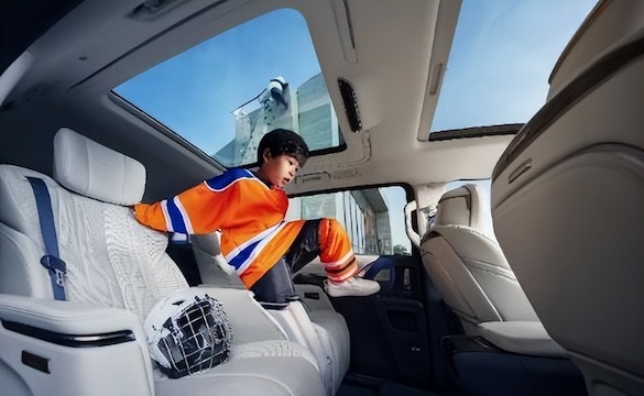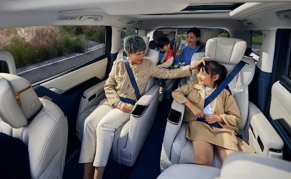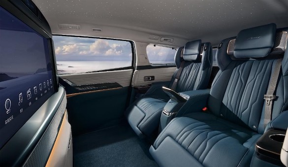 六座蕴世版创新采用二三排共用纵向电动长滑轨和第二排电动横滑设计,不仅可以让二/三排座椅分别实现近半米的电动前后移动,二排座椅还可分别横向移动,提供近享、休憩、入眠、三排便捷上/下车、舒适、后备厢延伸共7项一键奢享座椅联动模式,配合多重人性化细节设计,满足用户高频使用的出行场景。六座版第二排配备高级Nappa真皮宇航座椅,支持14向全电动调节,配备一体展开式电动腿托和电动无级调节脚踏;座椅带3档加热/通风/位置记忆,以及3档强度调节、8种模式的10点式按摩功能;另外还配备了翻折小桌板、无线充电手机槽、USB接口;内侧扶手则集成滑动式6吋智能触控屏,实现对座椅、车窗、遮阳帘、空调、氛围灯的流畅控制。第三排独立豪华座椅采用与第二排宇航座椅相同的骨架,带3档加热/通风功能,可实现前后460mm电动调节,为乘客提供了无可比肩的三排舒适体验。