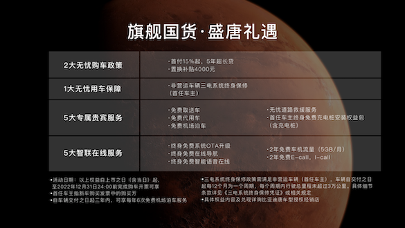 向上之路,永不止步!唐DM-p性能、豪华、安全、科技四大旗舰价值引领,为超越而来;唐DM-i 252KM尊享型续航再攀高峰。唐DM超强i&p,加同级最强纯电2022款唐EV,唐家族已吹响冲击高端新能源汽车市场的冲锋号角,必将以昂扬之姿打破外资品牌壁垒,引领中国品牌SUV高端化进程加速进阶。