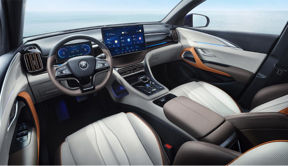 2022款宋Pro DM-i内饰设计由比亚迪首席内饰总监——米开勒·帕加内蒂领衔打造,整体氛围尽显轻奢质感。