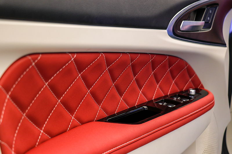 新车内饰也是简约复古风,考究的材质和色彩搭配上都十分惊艳,很好的与车身相配合,菱形缝线工艺增加了豪华感。