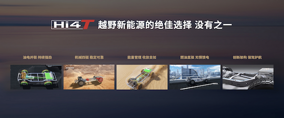 Hi4-T是越野新能源时代的最佳选择,由长城集团基于坦克平台打造,采用纵置并联混动架构,具有可持续的强动力输出、精准化智慧能量管理、可靠耐用的四驱系统、安全可靠创新架构等特征,让越野“要劲儿有劲儿、要电有电、要省能省”,做到全工况从容驾驭。