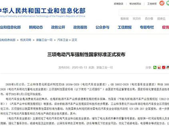 5月12日,工业和信息化部宣布其组织制定的gb 18384-2020《电动汽车安全要求》、gb 38032-2020《电…