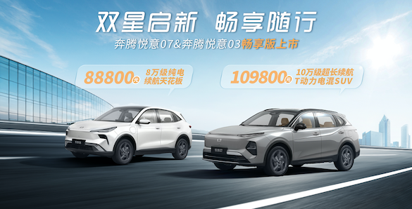 畅享长续航,击穿质价比!9月23日,一汽奔腾“悦意双子星”奔腾悦意07、奔腾悦意03畅享版正式上市。其中,“超长续航T动…